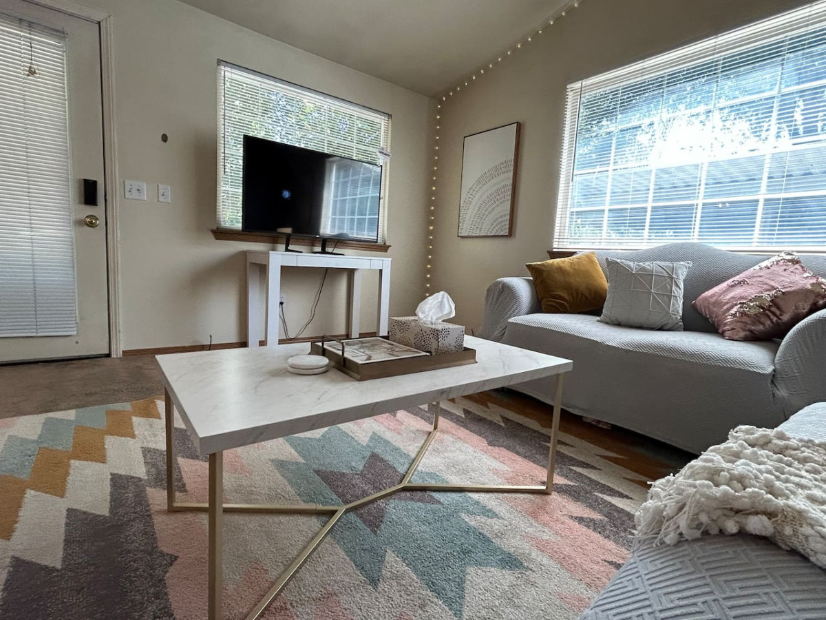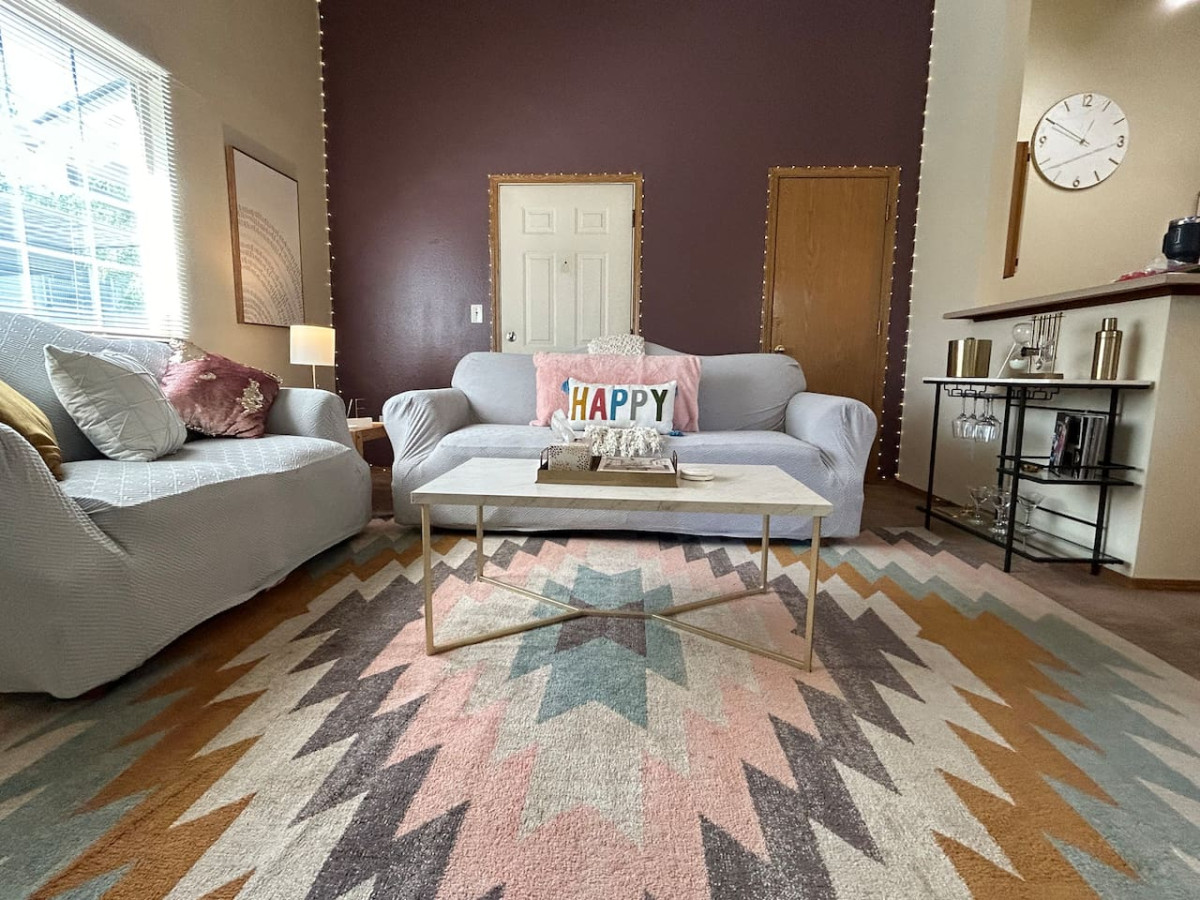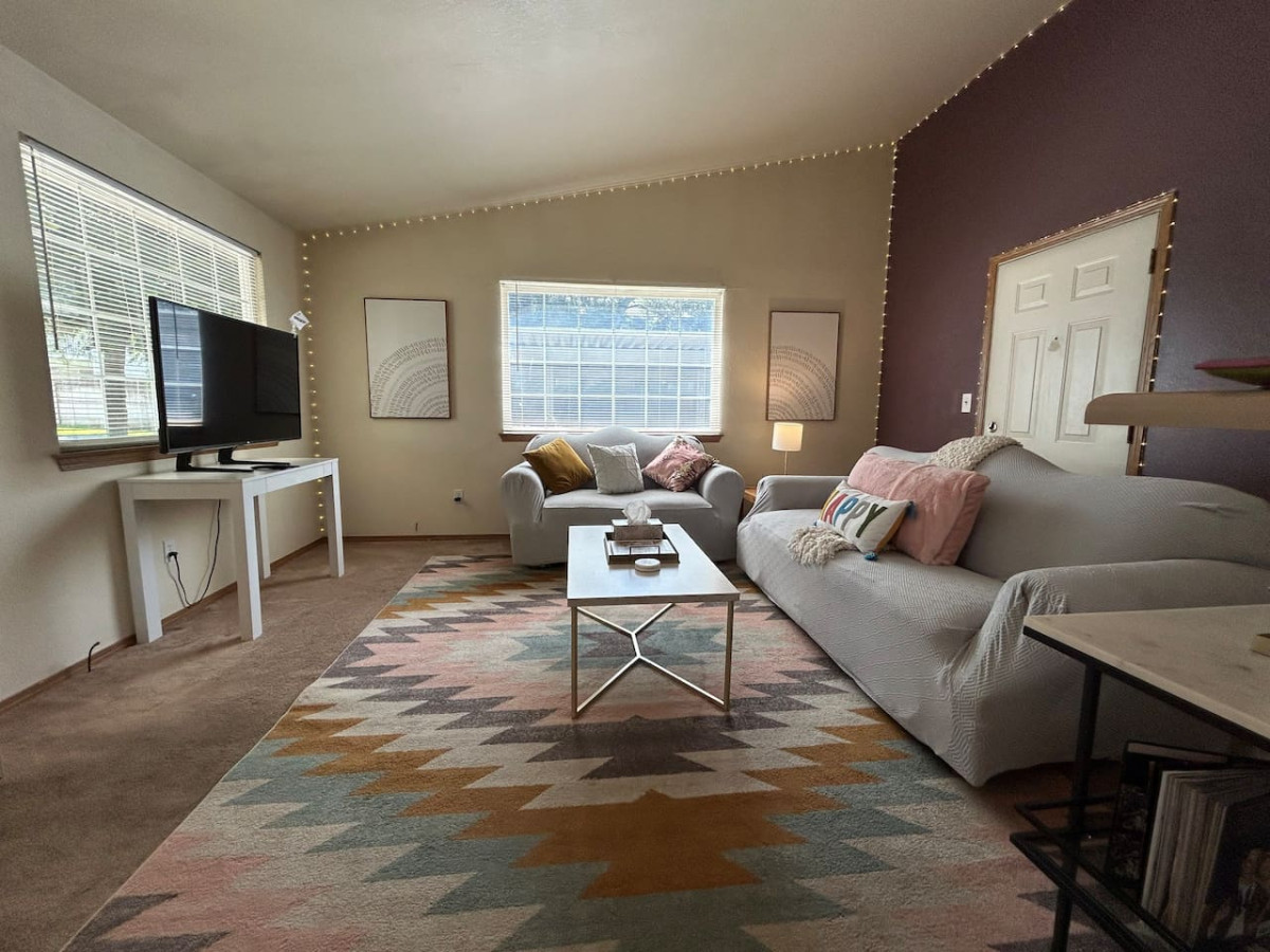 Relax in the stylish living room, complete with a smart TV for all your entertainment needs. The twinkling lights around the perimeter of the room add a touch of magic, making it a perfect spot to unwind after a day of exploring Boise.