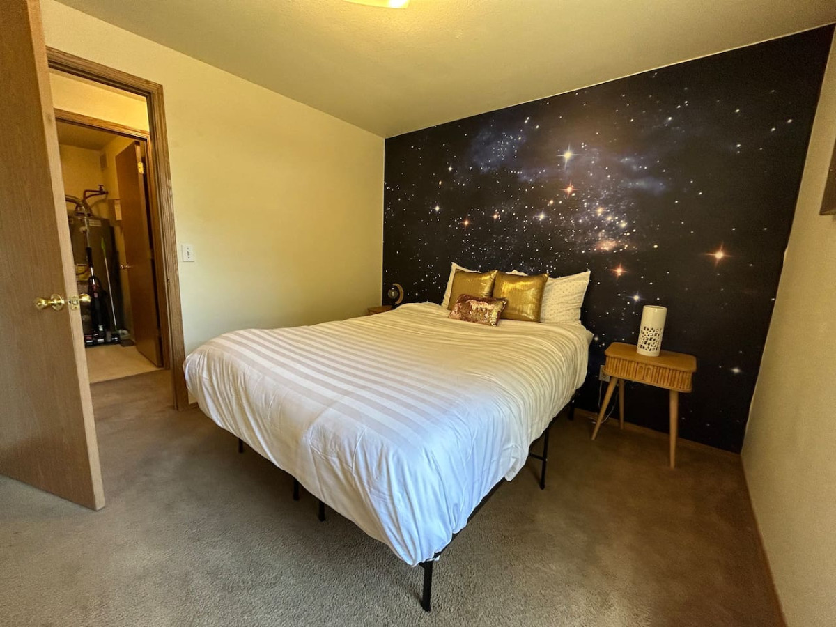 Welcome to your celestial escape in Boise, Idaho! This enchanting 2-bedroom, 2-bathroom house is designed to transport you to a starry paradise, offering a unique and memorable stay. Complete with a mini bar, and twinkling lights throughout. Parking for two on-site, washer/dryer and a fully stocked kitchen await your stay. Just minutes away from Hillcrest Country Club and only 10 minutes to downtown Boise. Easy access to I-84 to get anywhere in the Treasure Valley.