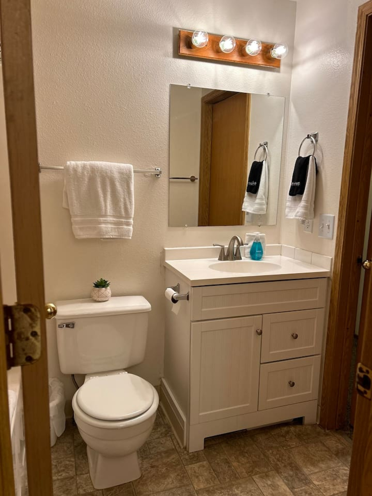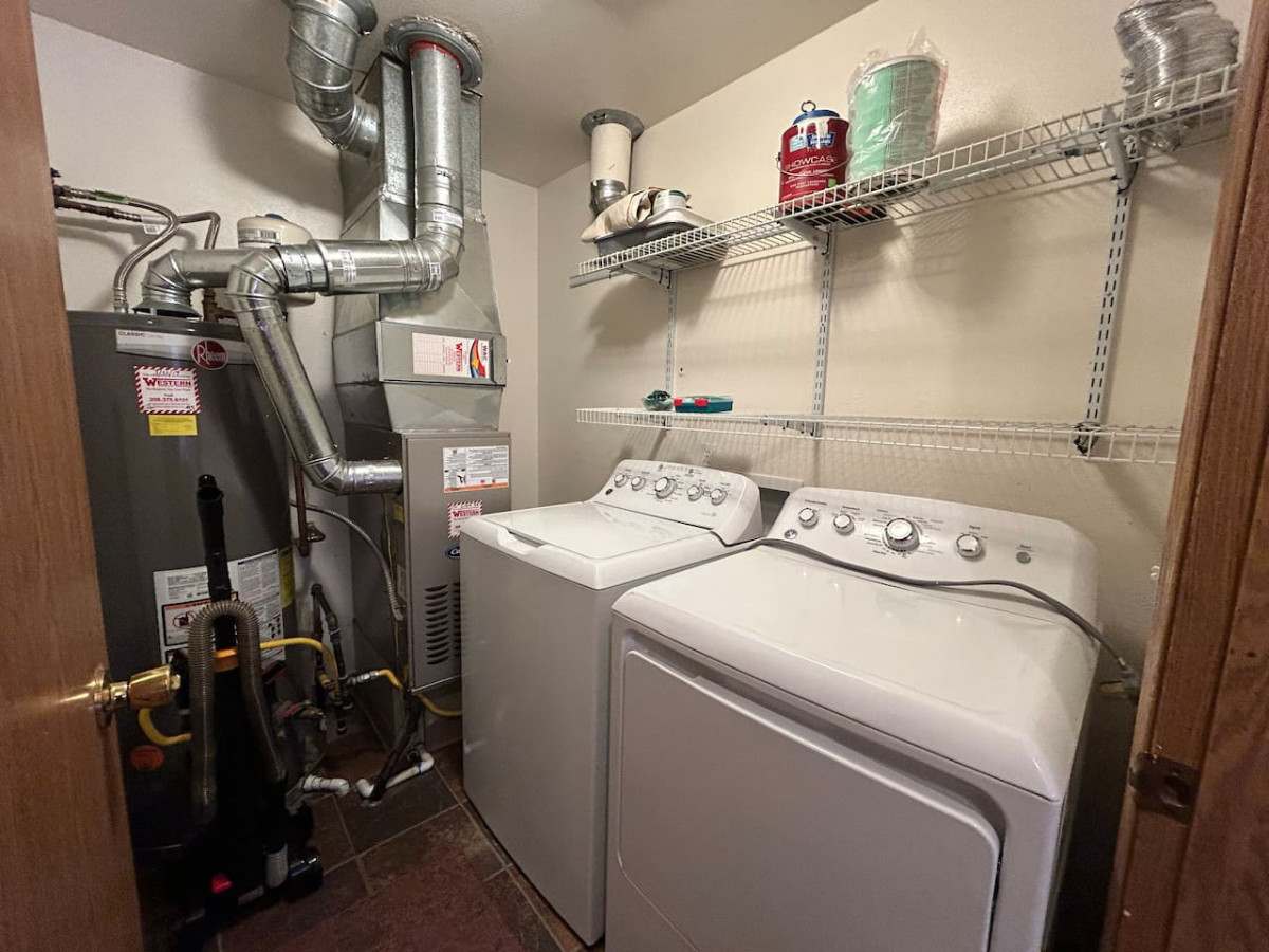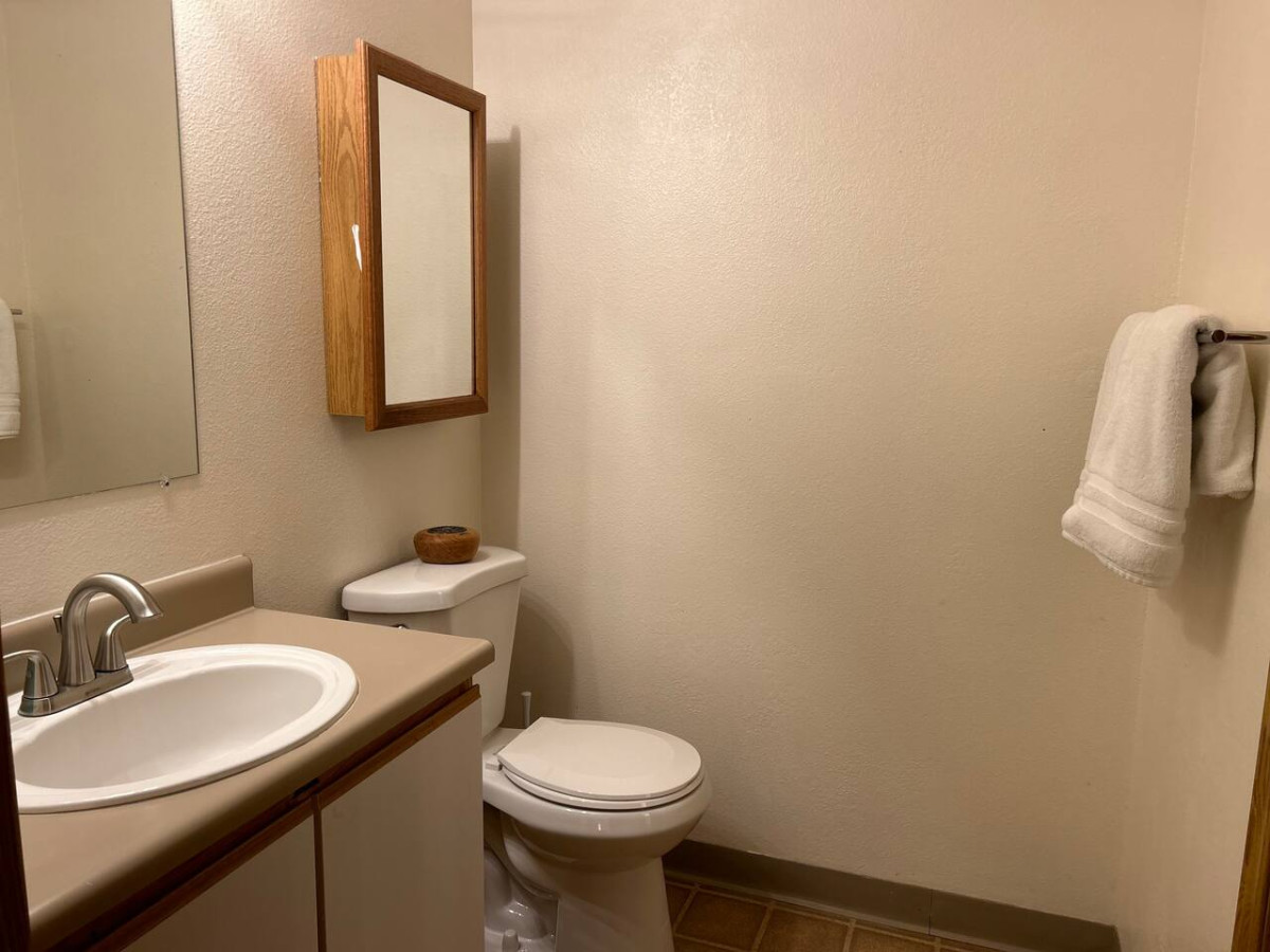 Quirky Half Bath: Our 1.5 baths include a quirky half bath, adding a touch of uniqueness to your stay. Fresh towels and essential toiletries are provided for your convenience including a blow dryer, shampoo, conditioner and body wash.