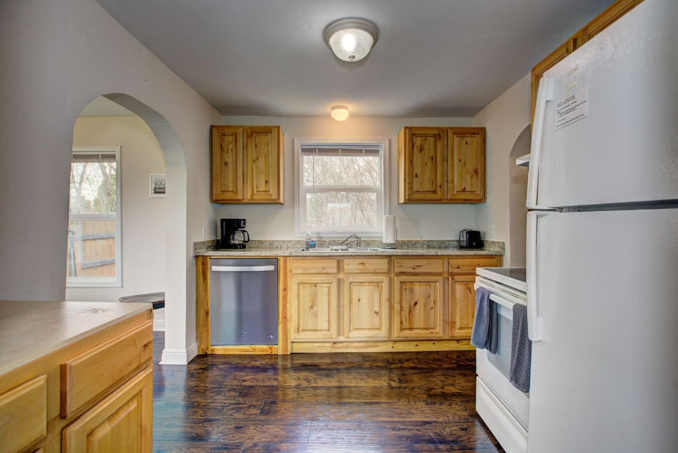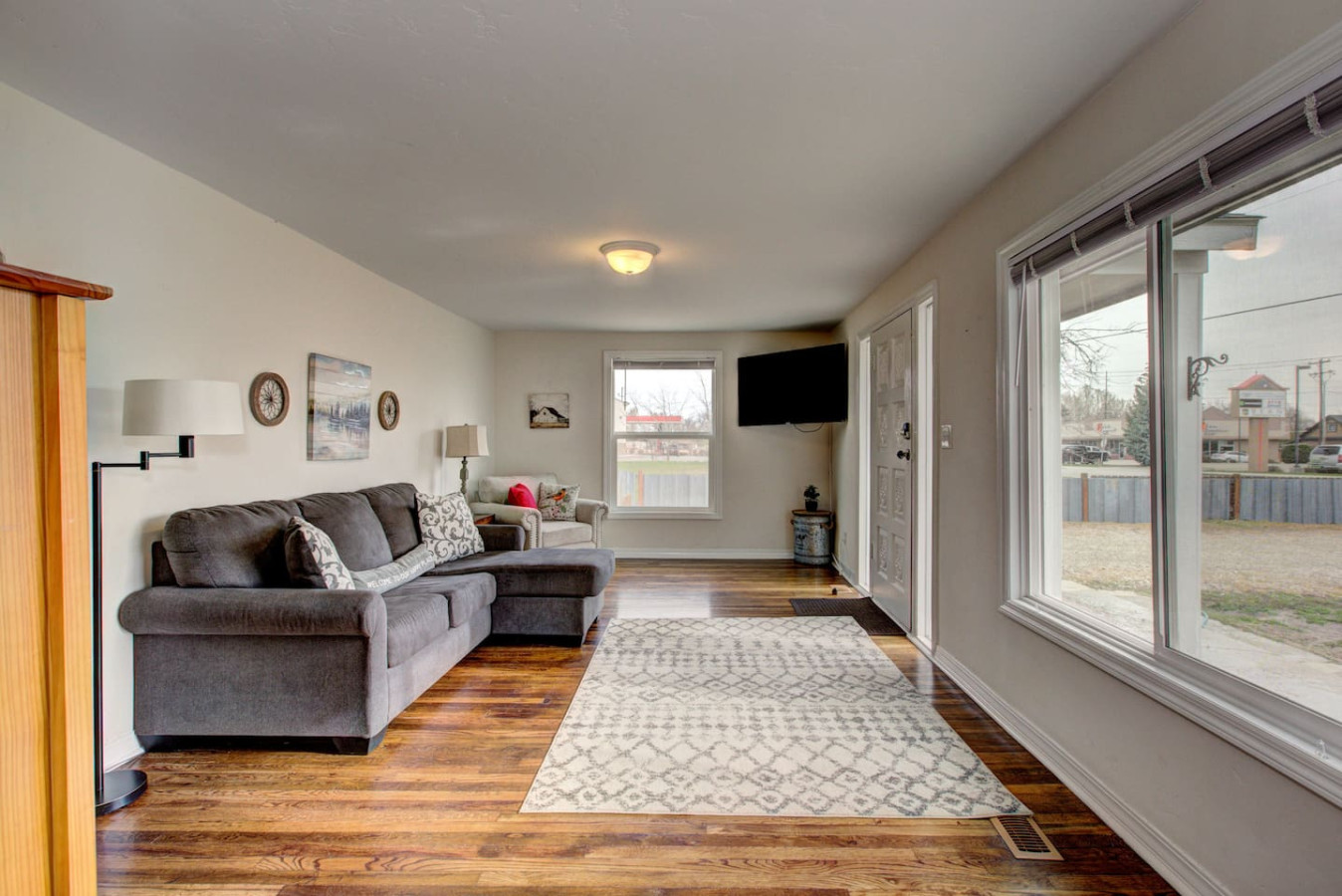 This Idaho home is designed with comfort in mind. The fully stocked kitchen ensures that whether your stay is short or long-term, you have everything you need to whip up your favorite meals. Just off the kitchen, you’ll find a stackable washer/dryer unit, making laundry a breeze during your stay, freeing up more of your precious time to relax and enjoy. The bathroom is thoughtfully appointed with essentials like shampoo, conditioner, body wash, and even a blow dryer, so you can travel lighter without compromising on your comforts.