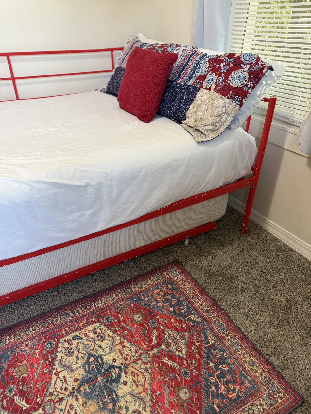 - Sleeps four comfortably, perfect for small families or a getaway, including a queen bed and trundle.