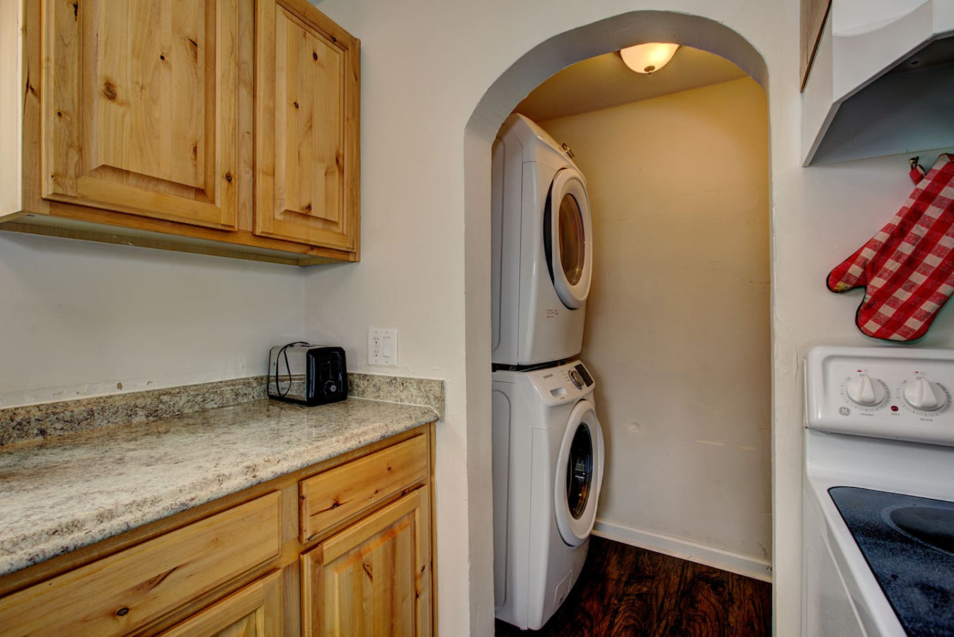 - Fully stocked kitchen and in-unit washer/dryer for convenience.