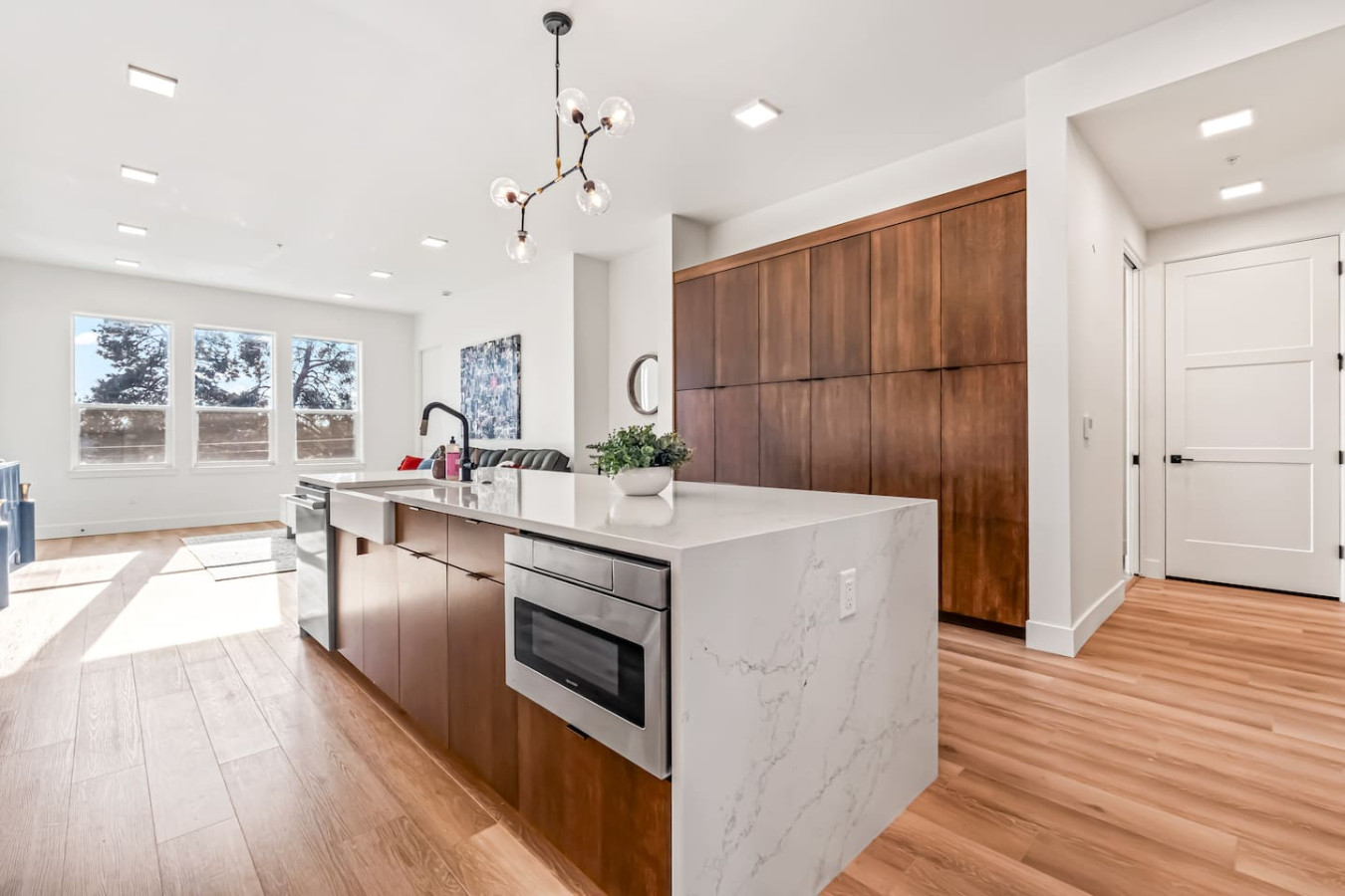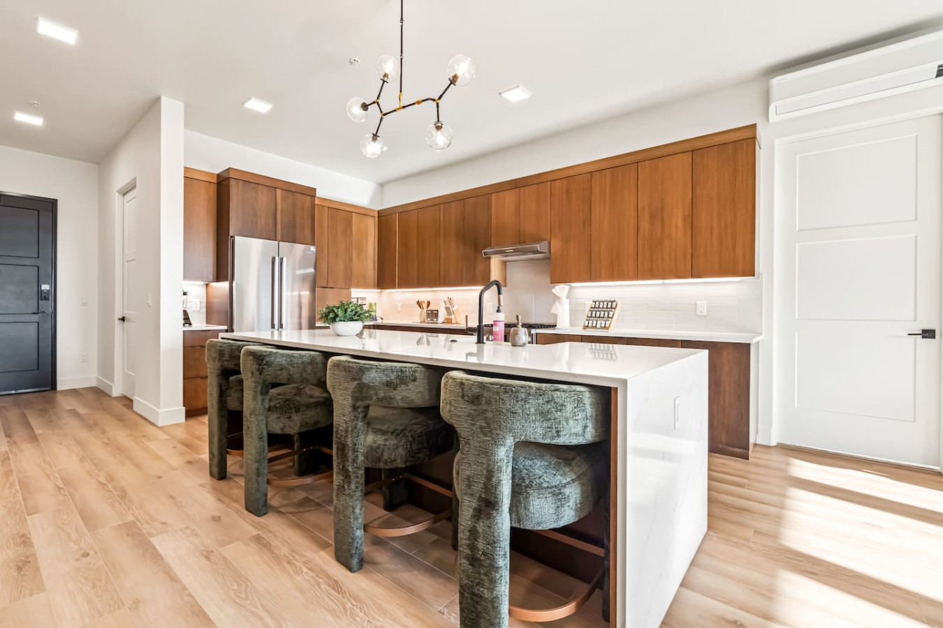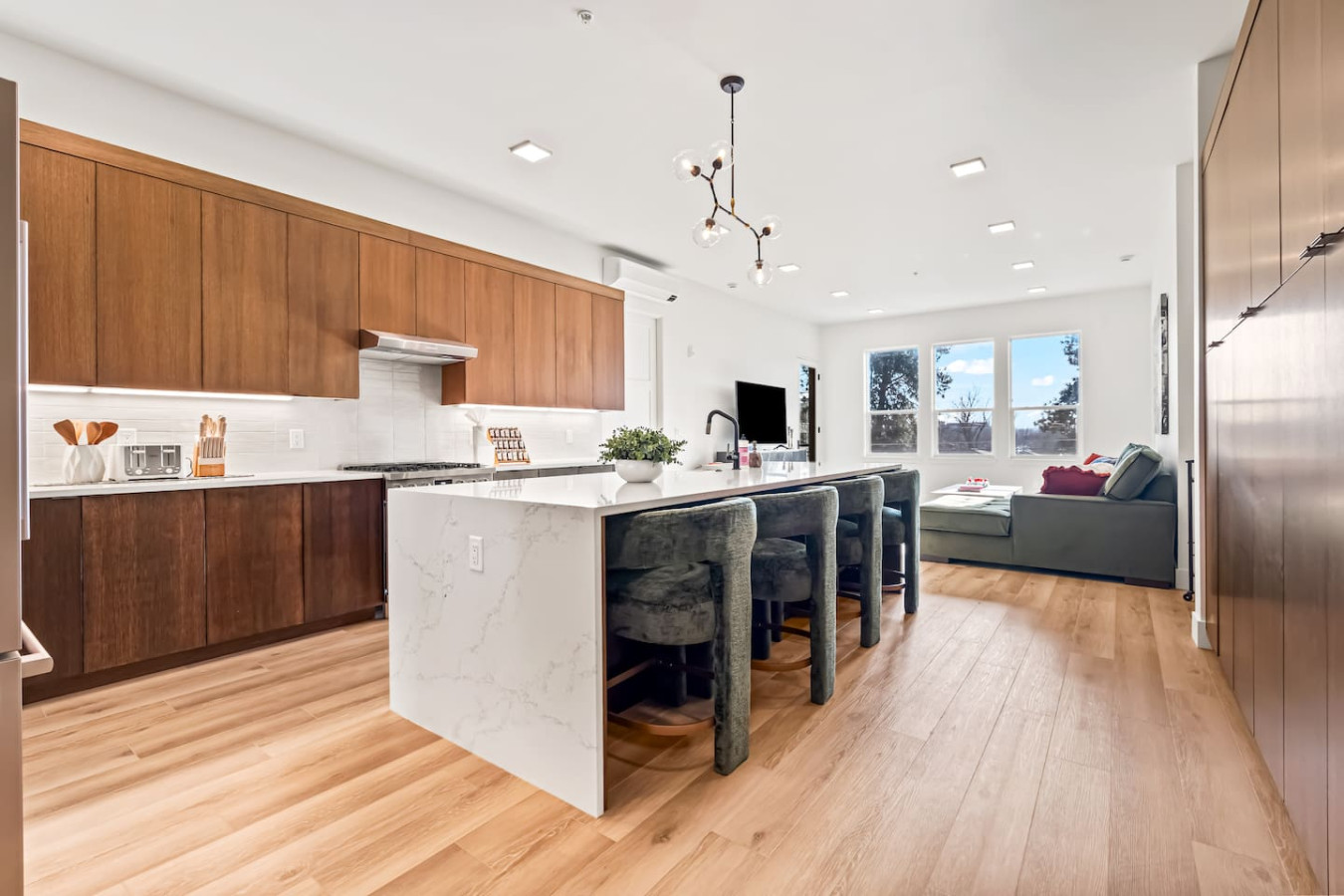 Emerald City is a high-end luxury condo in the heart of downtown Eagle, Idaho. This spacious, sun-filled residence features huge windows, stylish décor, and subtle Oz-inspired charm. Enjoy an emerald velvet sofa, a gourmet kitchen with a marble island and four bar stools, two private en-suite bedrooms, spa-style rain showers, and a private patio off the primary suite—steps from dining, shopping, and the Boise River Greenbelt. Located on the second floor of a secured building with garage parking