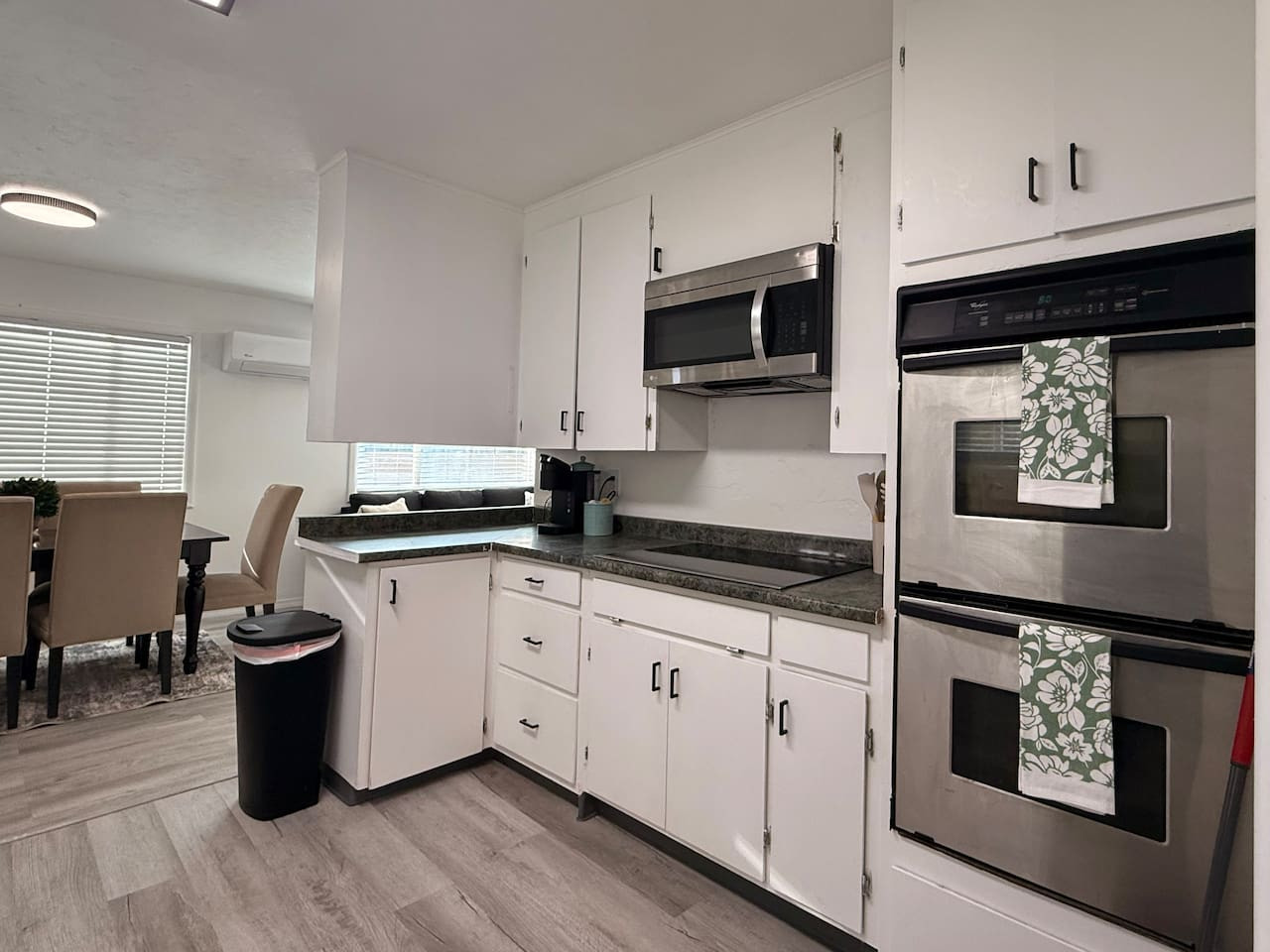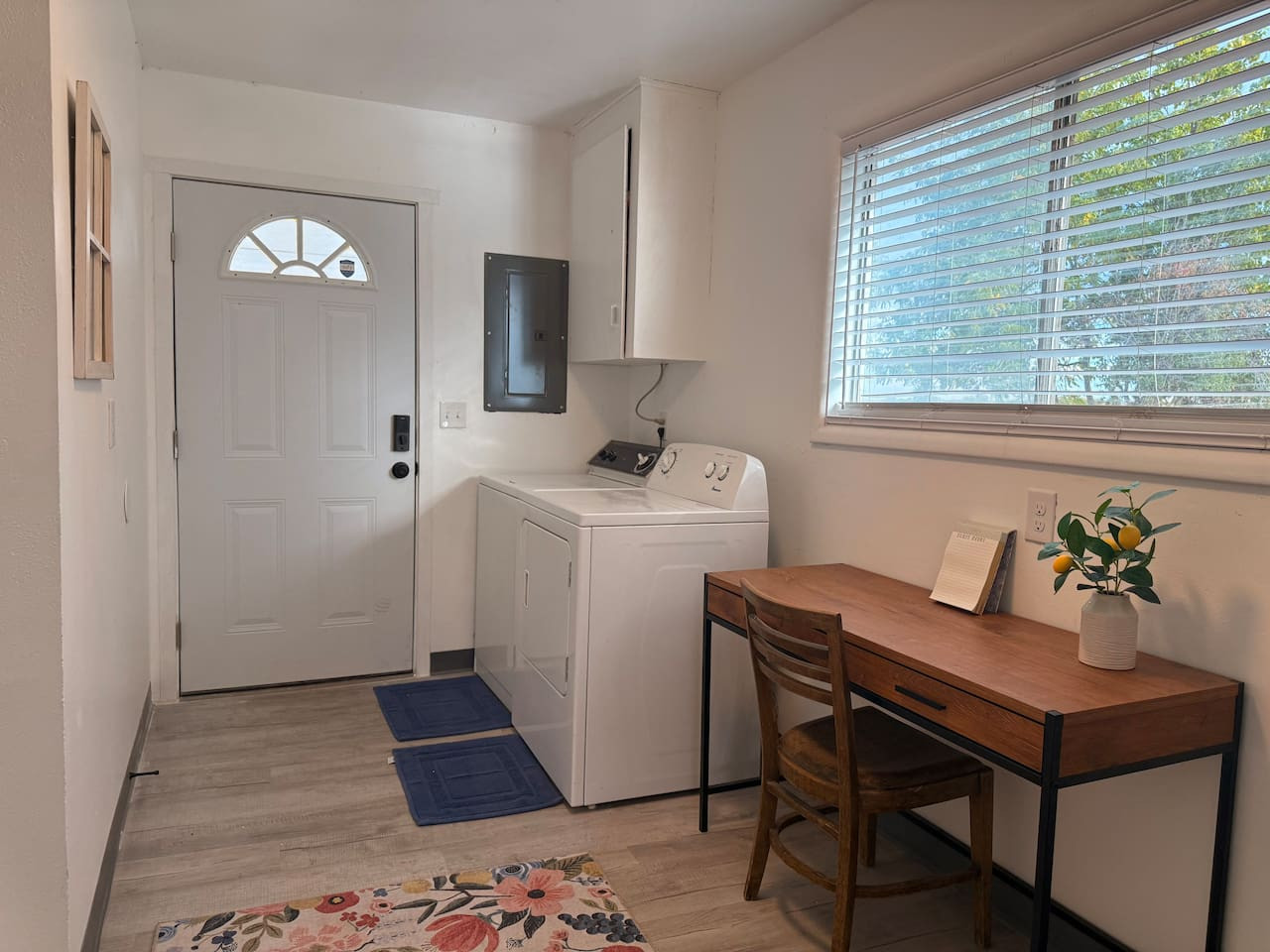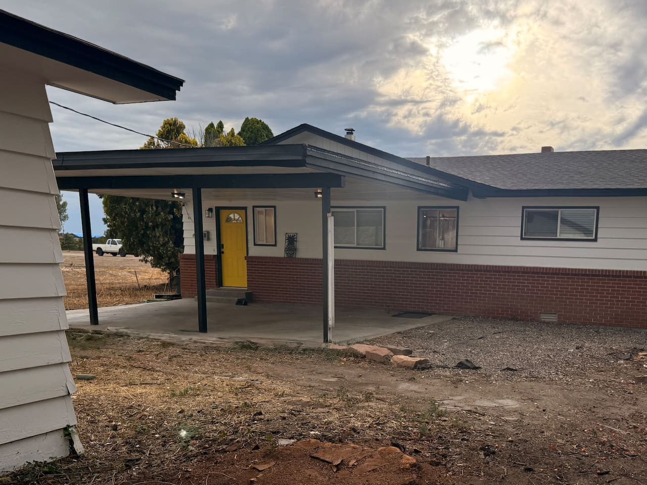 Step through the bright yellow door and feel instantly at home in this beautifully renovated 3-bedroom farmhouse, where modern design meets warm, welcoming charm. This single-level retreat has been thoughtfully furnished with stylish, comfortable décor and fully stocked amenities, so you can relax the moment you arrive. Inside, you’ll find three inviting bedrooms featuring a king bed, a queen bed, and a full bed, along with two full bathrooms, including one with a spacious walk-in shower. A cozy dedicated office nook with desk and chair makes it easy to work remotely or plan your next adventure, while the open living space invites you to unwind with a good book or gather for movie night.