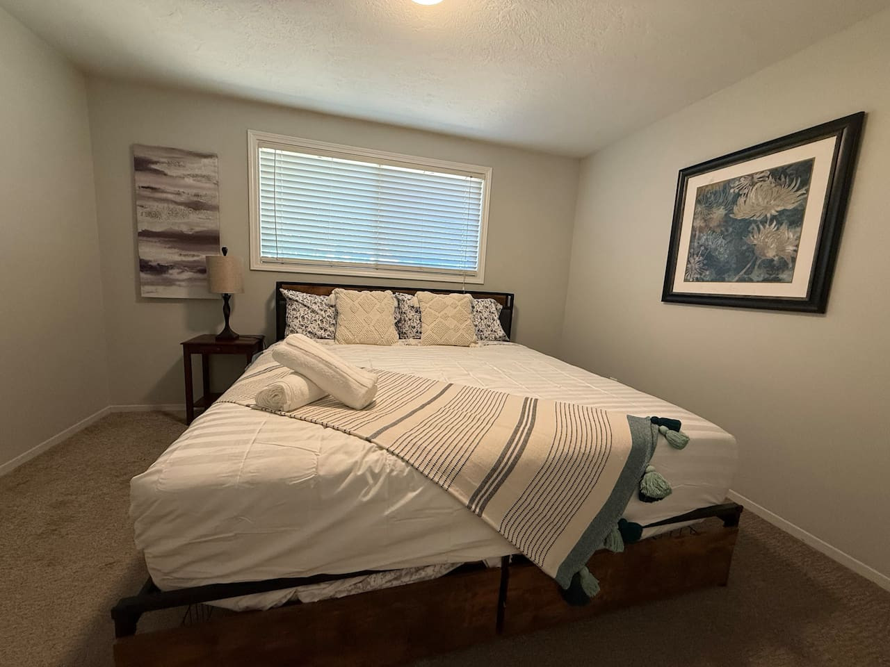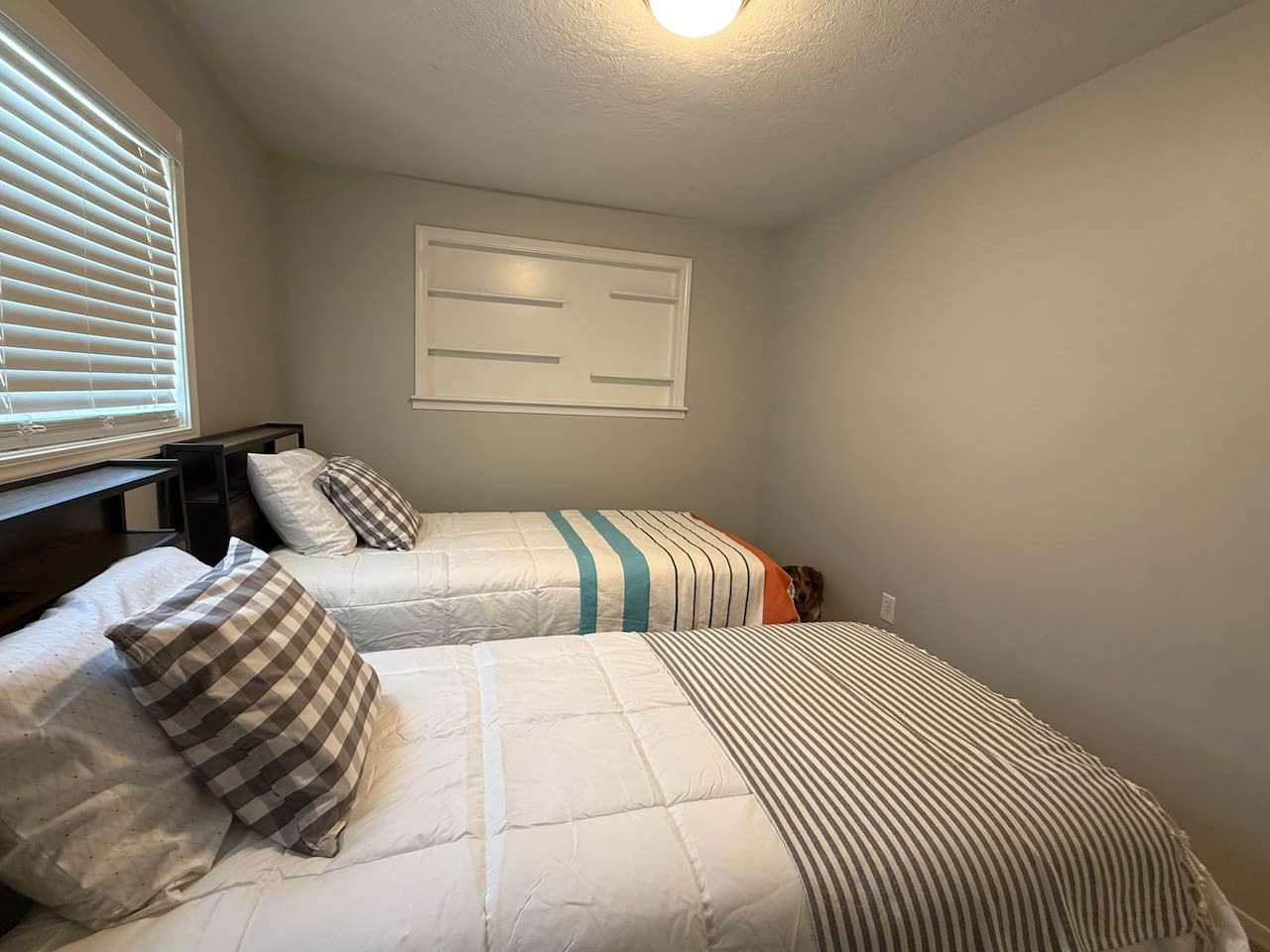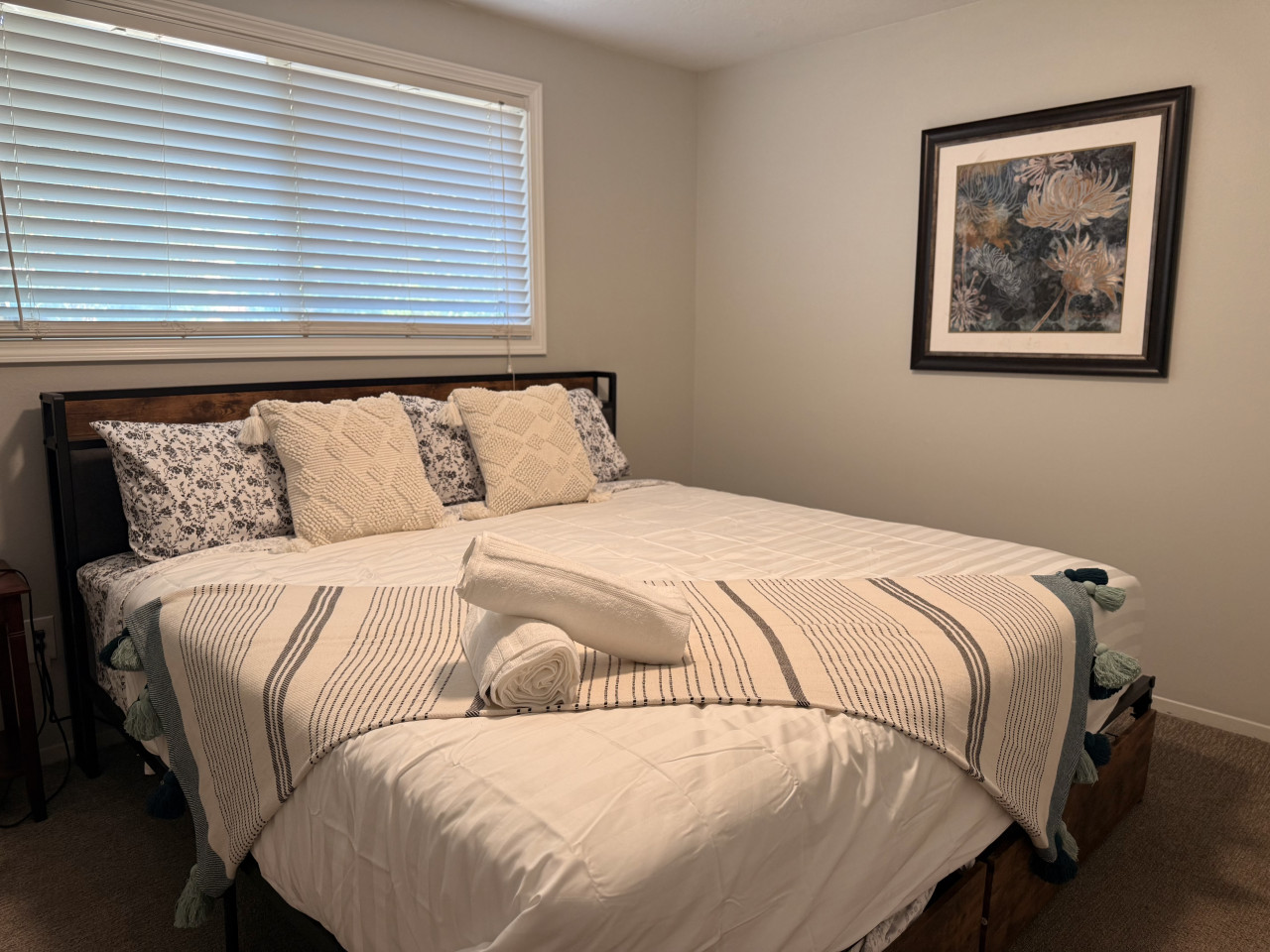 Welcome to Happy Hazel House, where comfort meets charm and every room brings a little joy. This single-level home is filled with calming colors, cozy spaces, and fresh flowers throughout — designed to make you feel instantly at ease. With a spacious king bedroom and a second bedroom with two twin beds, there’s room for families, friends, or couples traveling together. The brand-new mattresses make every night restful, and the large chaise couch in the living room offers extra sleeping space if needed. The fully stocked kitchen makes cooking a breeze, with a casual kitchen table for five and a larger dining table that seats eight — perfect for game nights or group meals. For work or study, a dedicated desk and comfortable desk chair are available, so you can stay connected without sacrificing comfort. The game and exercise room is a favorite spot, featuring a recumbent bike, pool table, air hockey, board games, and books for all ages. Step outside to a huge backyard where you’ll find a fire pit surrounded by Adirondack chairs, a patio with seating for four, and a propane grill — ideal for relaxed evenings under the stars. Whether you’re cozying up indoors or enjoying the fresh Boise air, Happy Hazel House is a space that invites you to slow down, laugh a little louder, and simply feel happy. And yes — we're pet friendly, too!