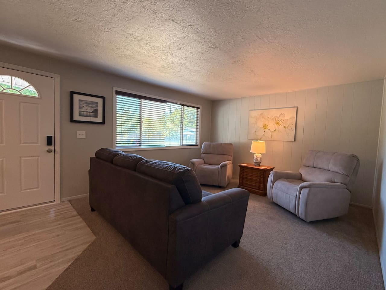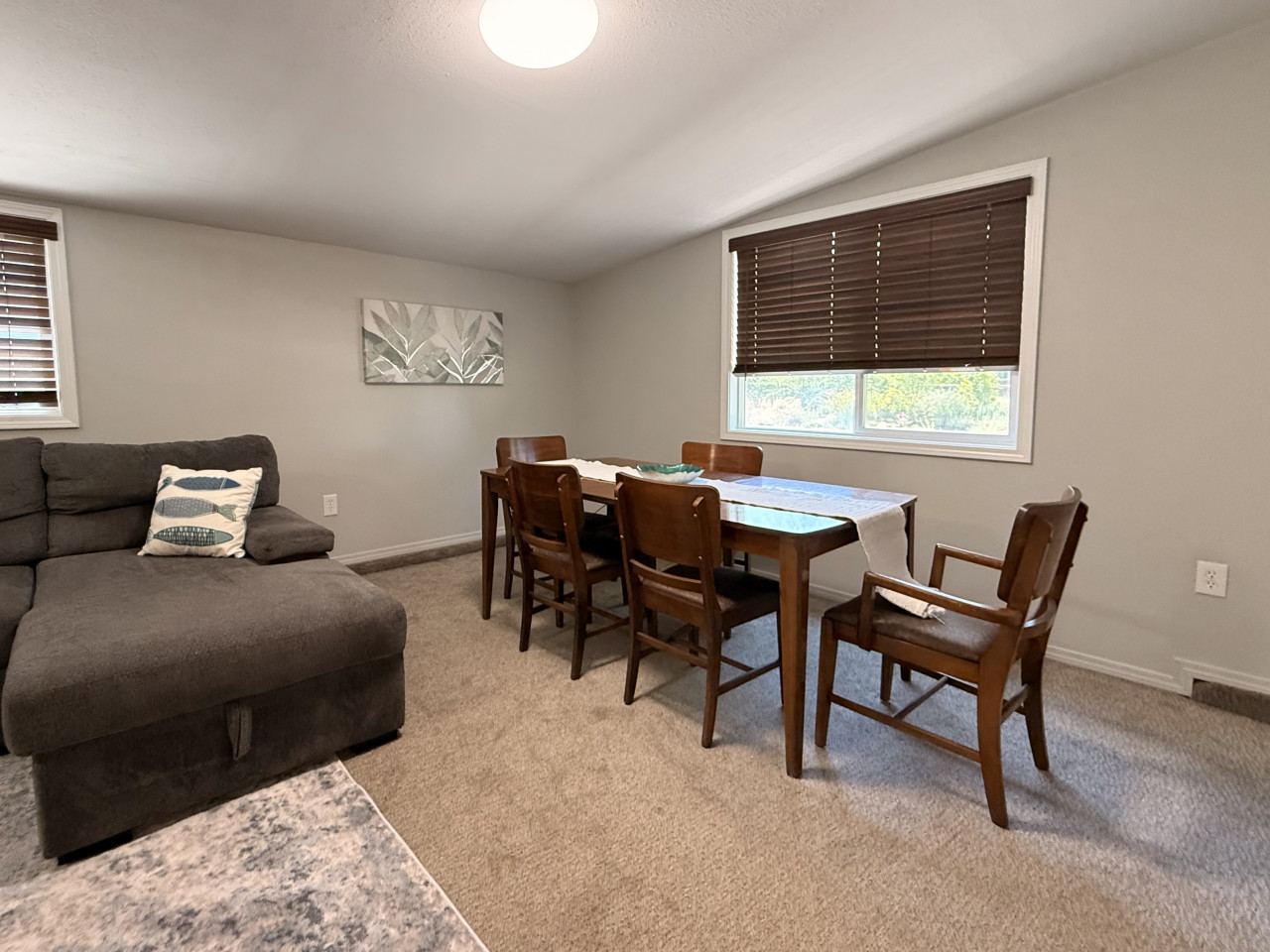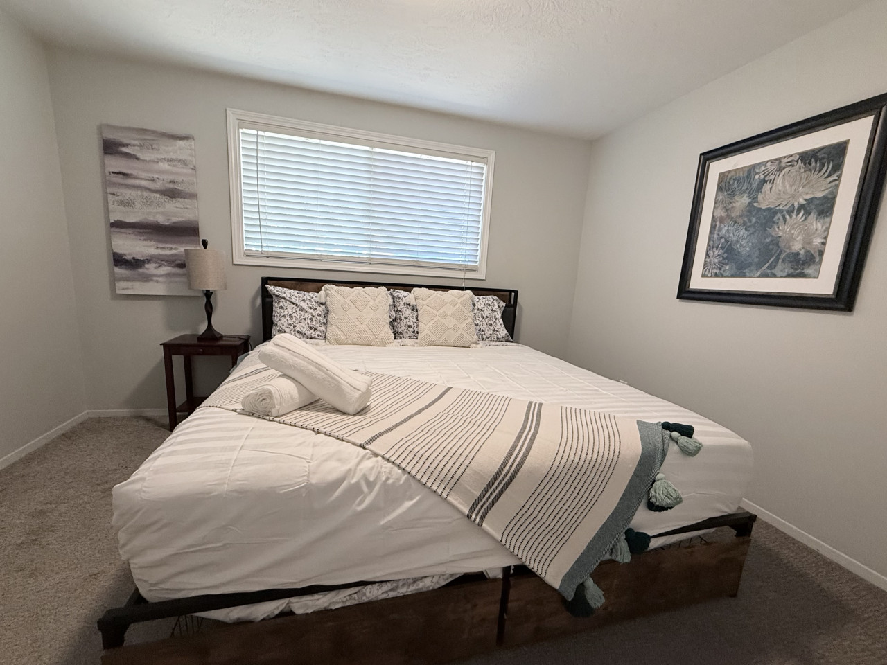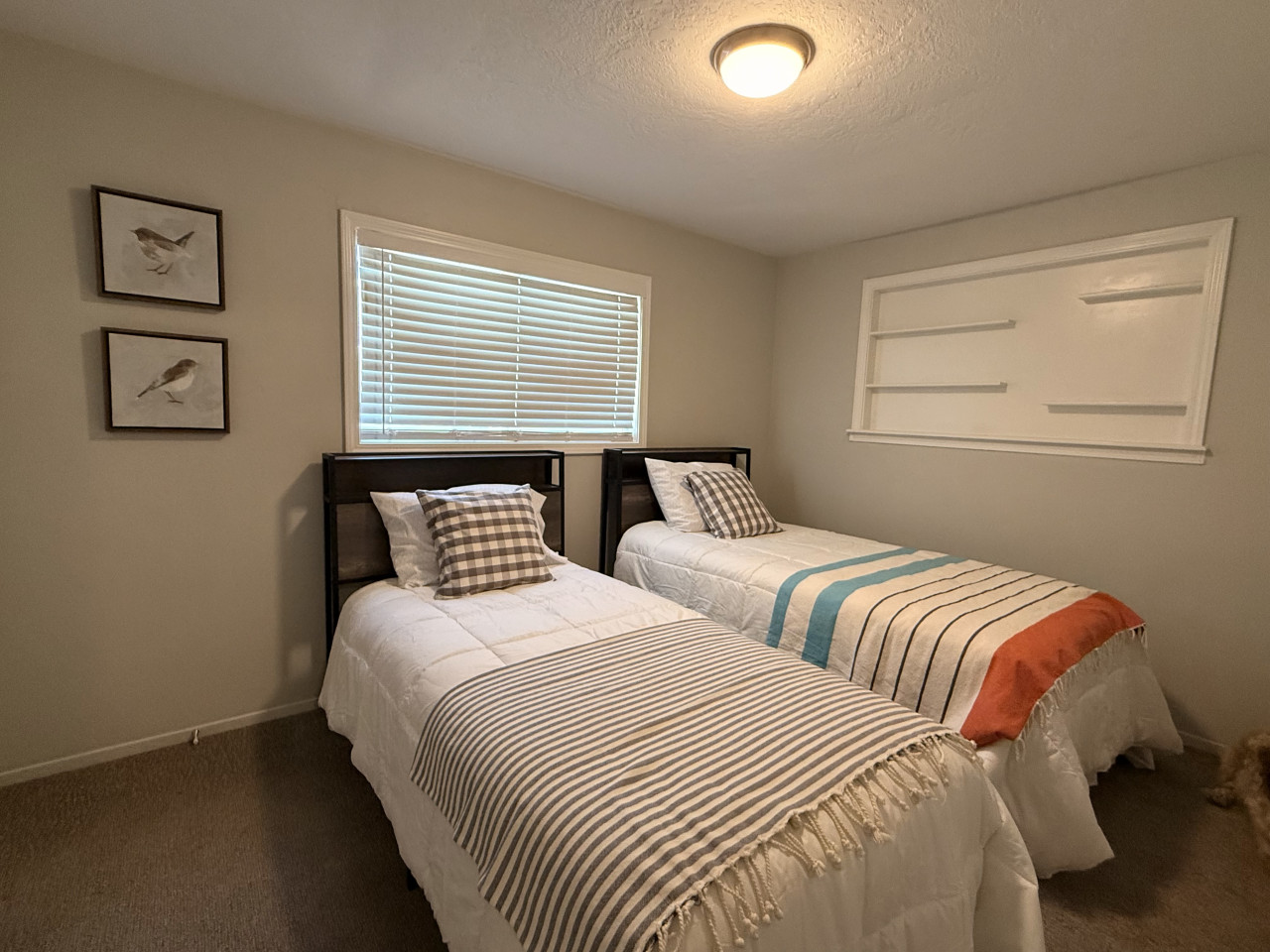 Welcome to Happy Hazel House, where comfort meets charm and every room brings a little joy. This single-level home is filled with calming colors, cozy spaces, and fresh flowers throughout — designed to make you feel instantly at ease. With a spacious king bedroom and a second bedroom with two twin beds, there’s room for families, friends, or couples traveling together. The brand-new mattresses make every night restful, and the large chaise couch in the living room offers extra sleeping space if needed. The fully stocked kitchen makes cooking a breeze, with a casual kitchen table for five and a larger dining table that seats eight — perfect for game nights or group meals. For work or study, a dedicated desk and comfortable desk chair are available, so you can stay connected without sacrificing comfort. The game and exercise room is a favorite spot, featuring a recumbent bike, pool table, air hockey, board games, and books for all ages. Step outside to a huge backyard where you’ll find a fire pit surrounded by Adirondack chairs, a patio with seating for four, and a propane grill — ideal for relaxed evenings under the stars. Whether you’re cozying up indoors or enjoying the fresh Boise air, Happy Hazel House is a space that invites you to slow down, laugh a little louder, and simply feel happy. And yes — we're pet friendly, too!