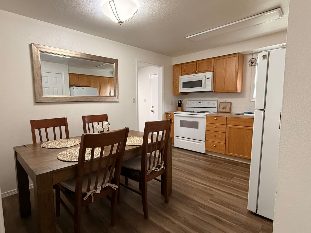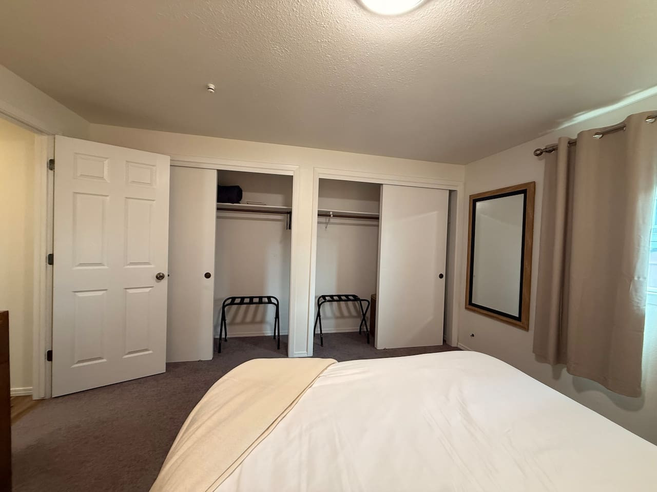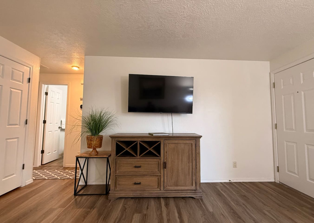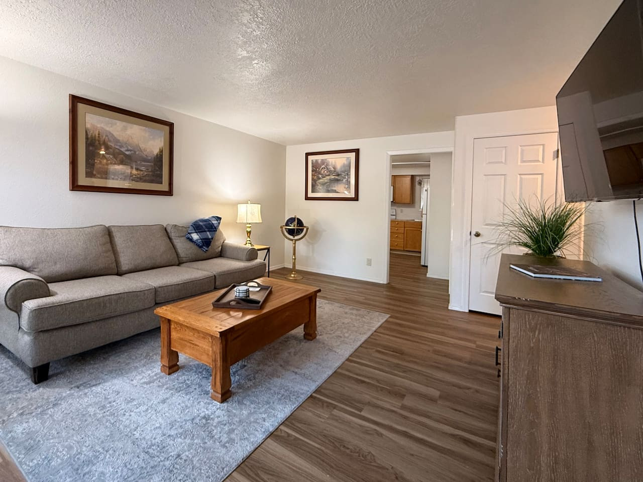 You’ll settle into one of two comfortable bedrooms, each with a queen bed and its own personality — one anchored in the spirit of the sea, the other flowing with the charm of Idaho’s rivers. The full bathroom with a walk-in shower adds both ease and comfort to your stay. In the living room, you can unwind in front of the Smart TV, or simply enjoy the peaceful glow of the artwork that gives the home its gentle, timeless feel.