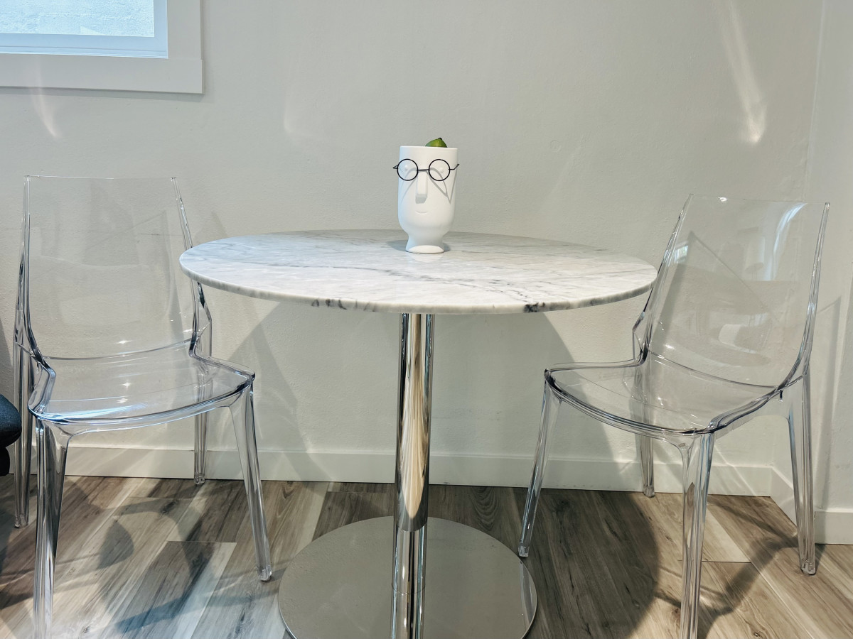 The fully equipped kitchen is a culinary delight, boasting state-of-the-art appliances and ample counter space. Prepare delicious meals with ease, and savor them at the modern dining table, which seats up to four guests.