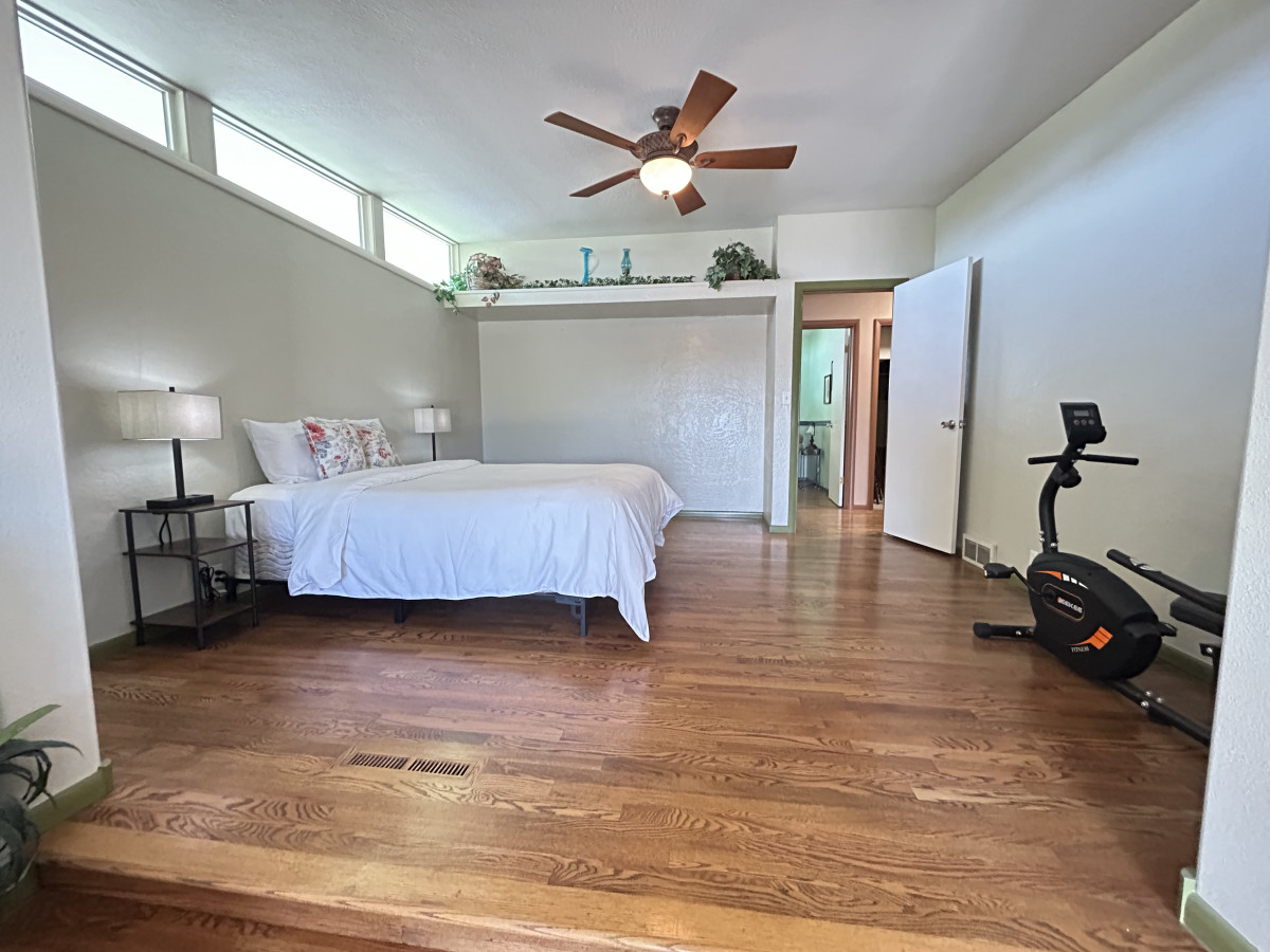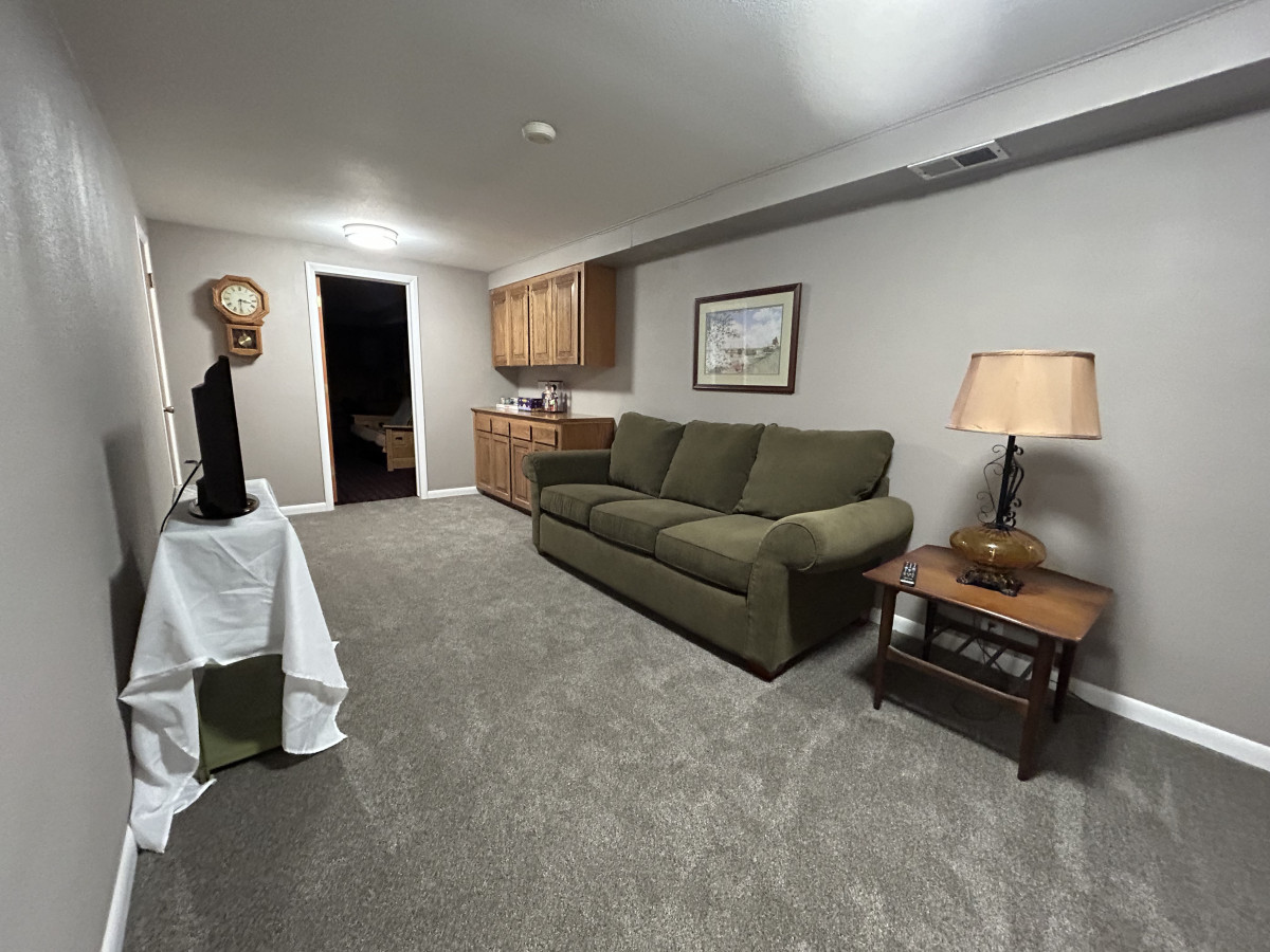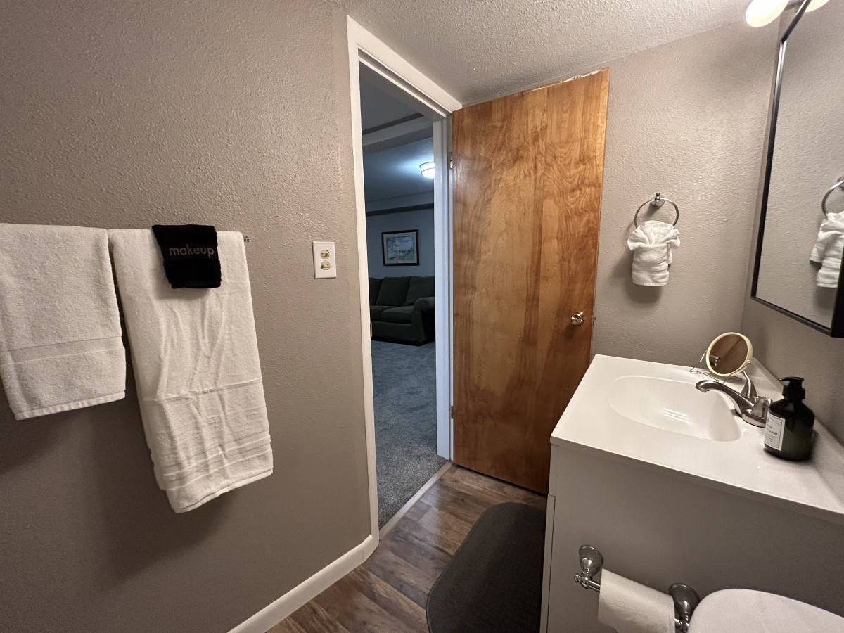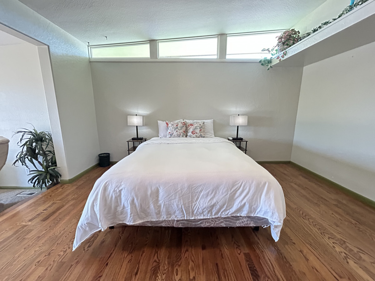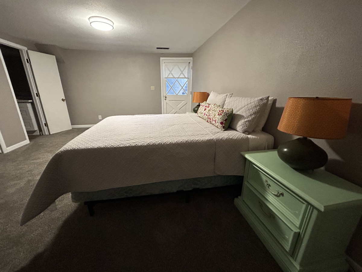 Head downstairs and find another living room and 3 more bedrooms and two brand newly remodeled bathrooms! Plus, a private entrance to the expansive back yard. The downstairs family room has a smart TV and a queen size pull out couch. There are 3 separate bedrooms. One has a queen size bed plus a queen size futon. One bedroom has 2 twin beds and the last has a queen size bed. There is a ginormous walk-in closet between the bedrooms with the two twin beds and the queen bedroom for both to share. There are also two full bathrooms downstairs as well.