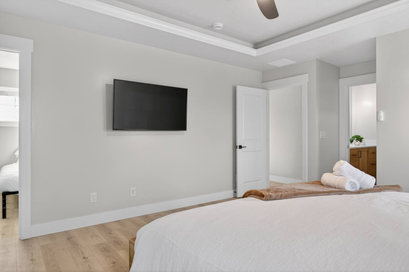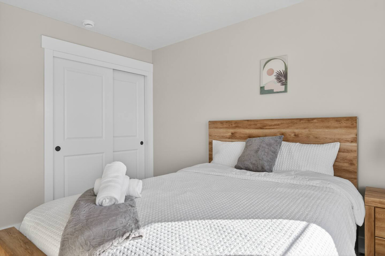 All bedrooms feature comfortable mattresses, quality linens, and a calm neutral design to help you unwind and sleep well.