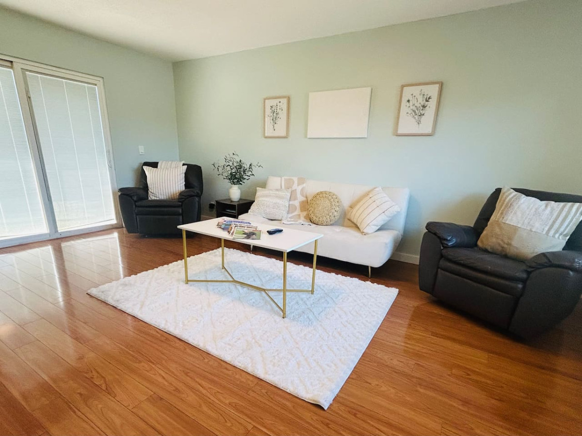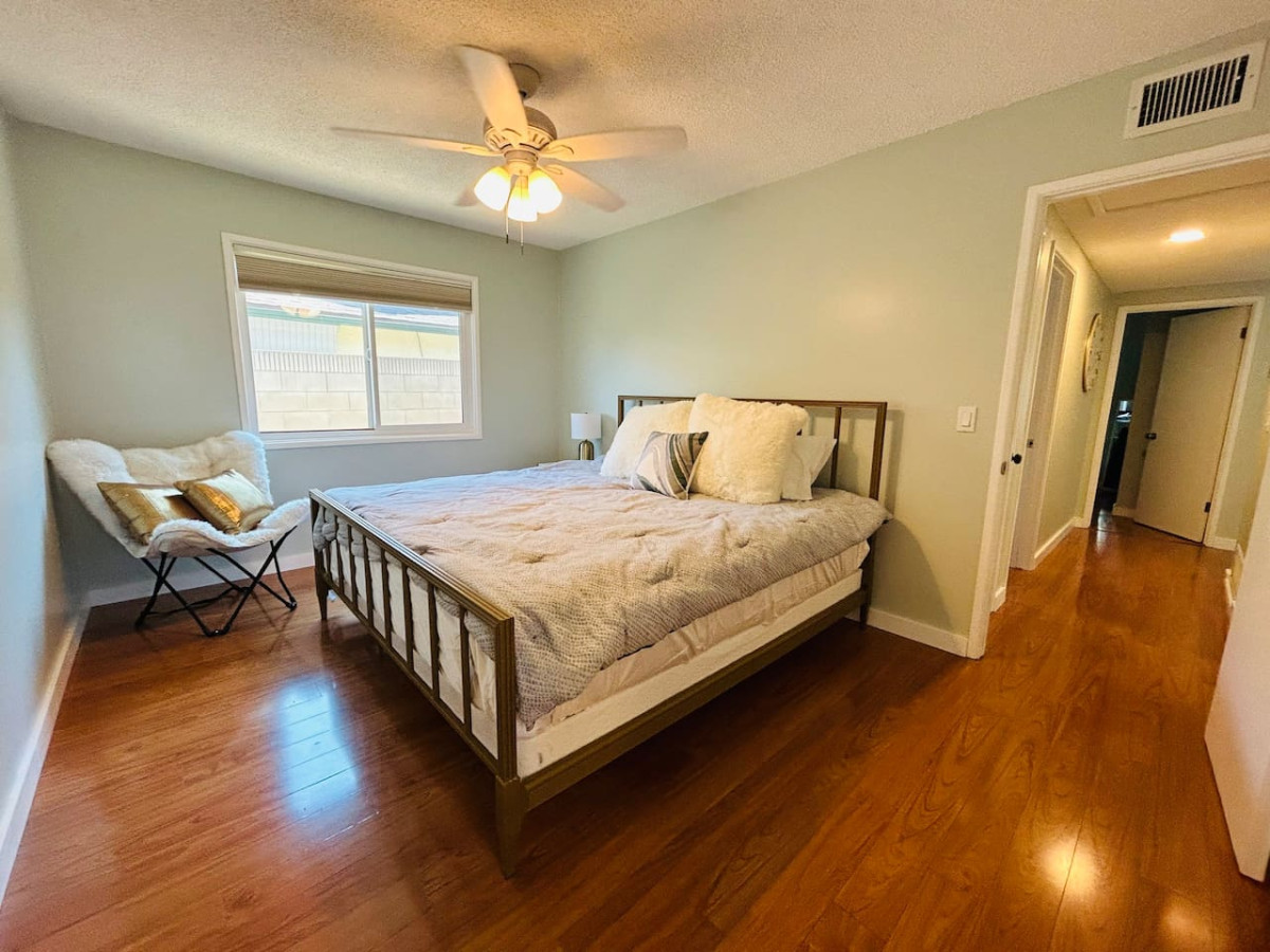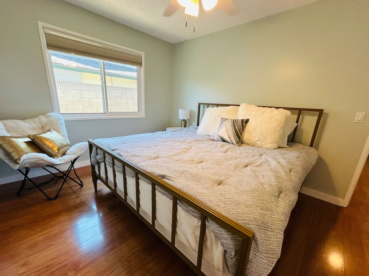 A delightful 3-bedroom, 2-bathroom retreat that offers both comfort and entertainment in the heart of La Puente. The master bedroom features a luxurious king-sized bed, while the other two bedrooms each offer cozy queen-sized beds. For additional guests, a full-size sofa sleeper provides extra comfort.