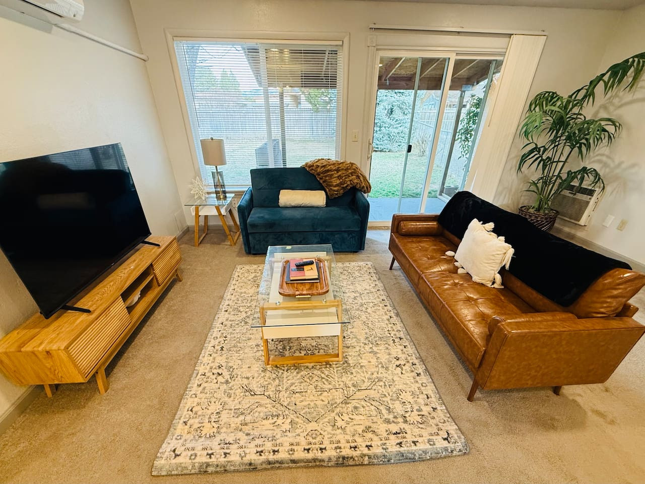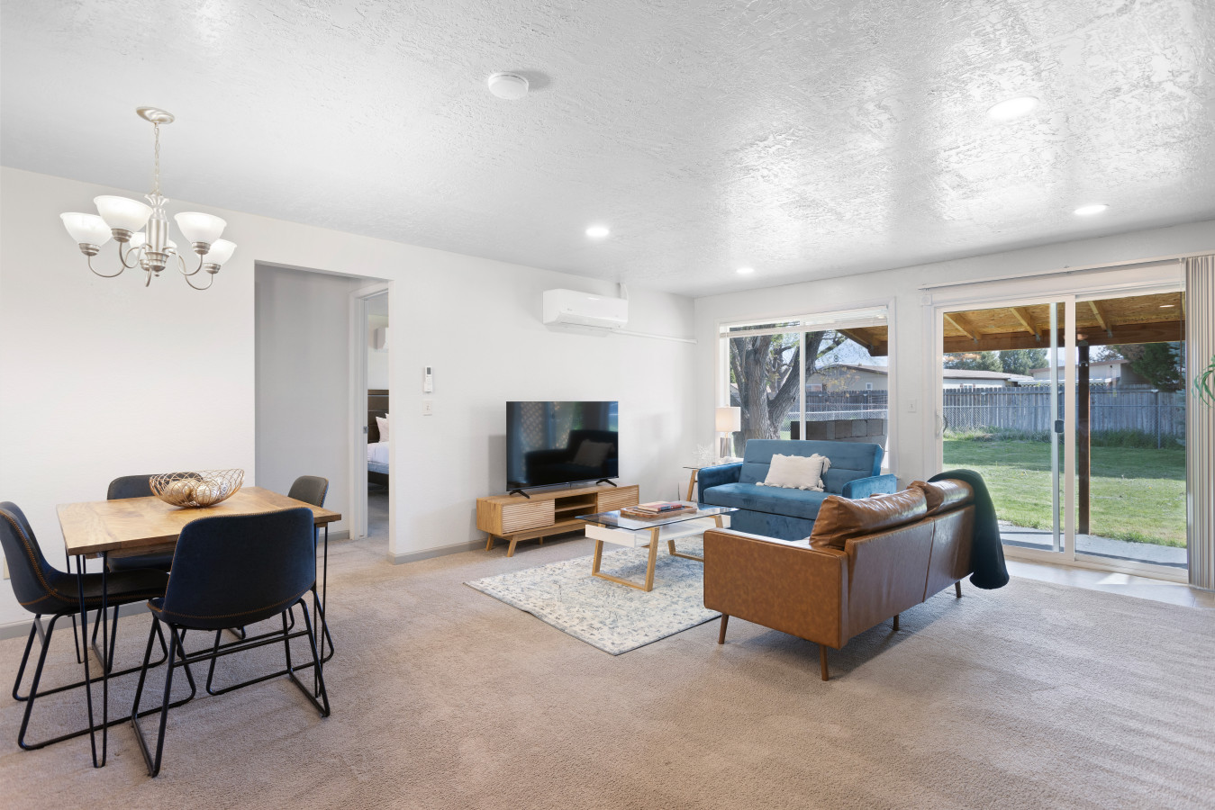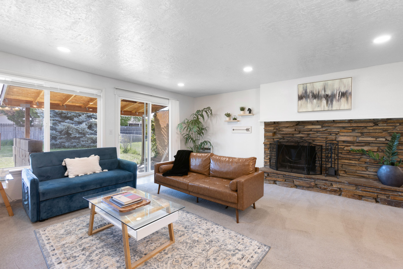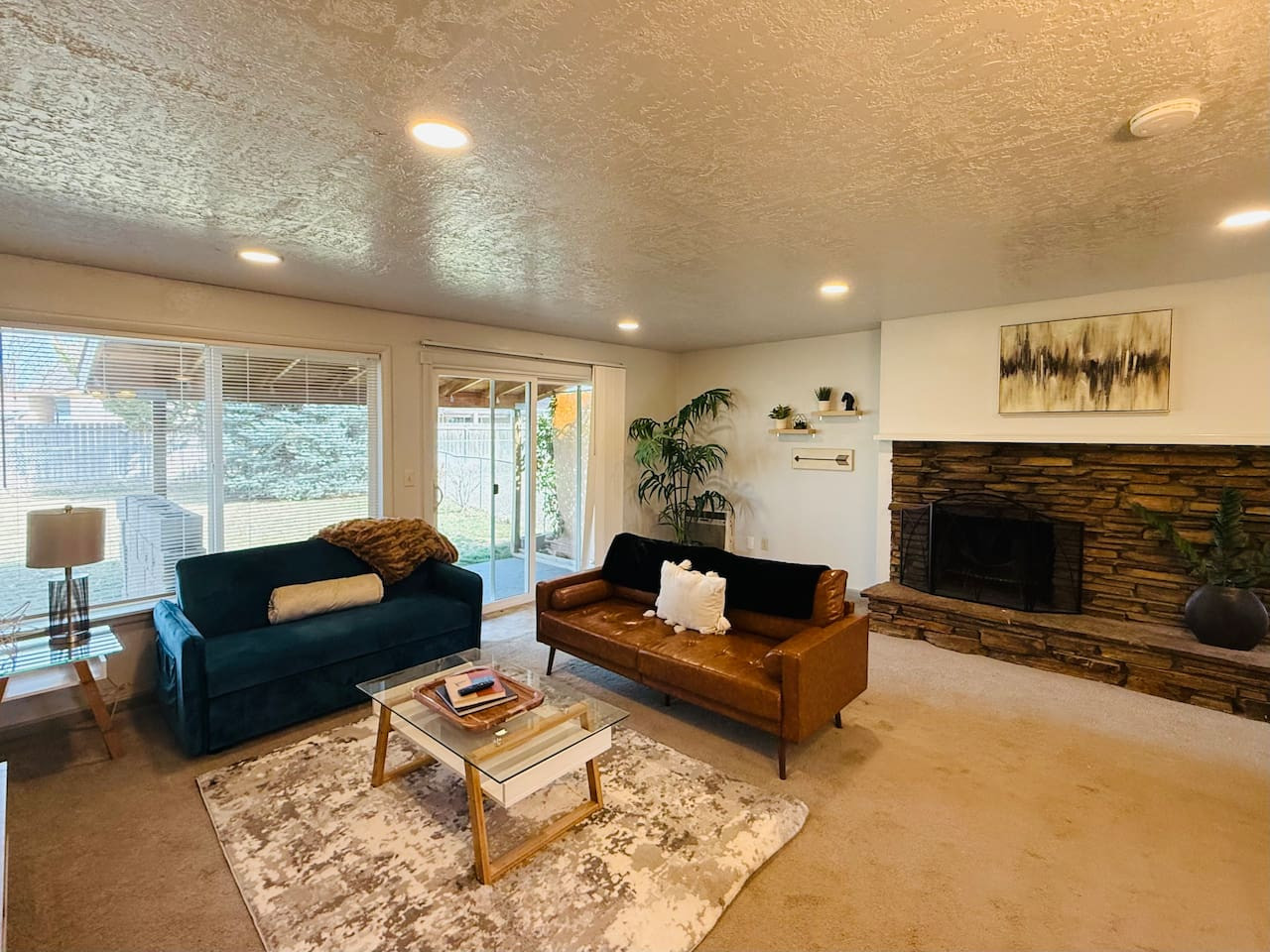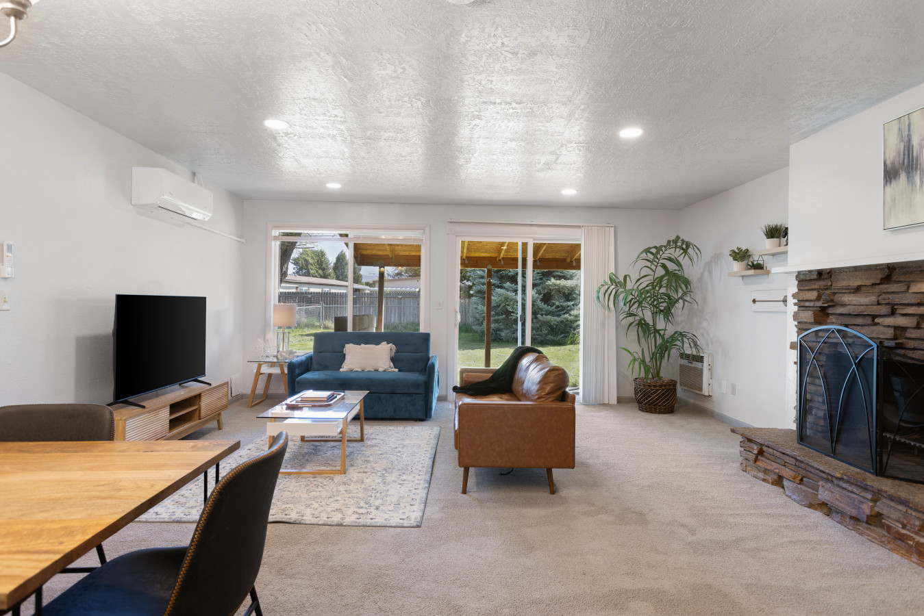 From the moment you arrive, Siesta Sunset welcomes you with warm, modern décor and a cozy yet sophisticated atmosphere. Step inside and find a beautifully furnished living space, featuring a comfortable full-size sofa sleeper, a big-screen Smart TV, and a fireplace that sets the perfect ambiance for unwinding after a day of exploring Boise.