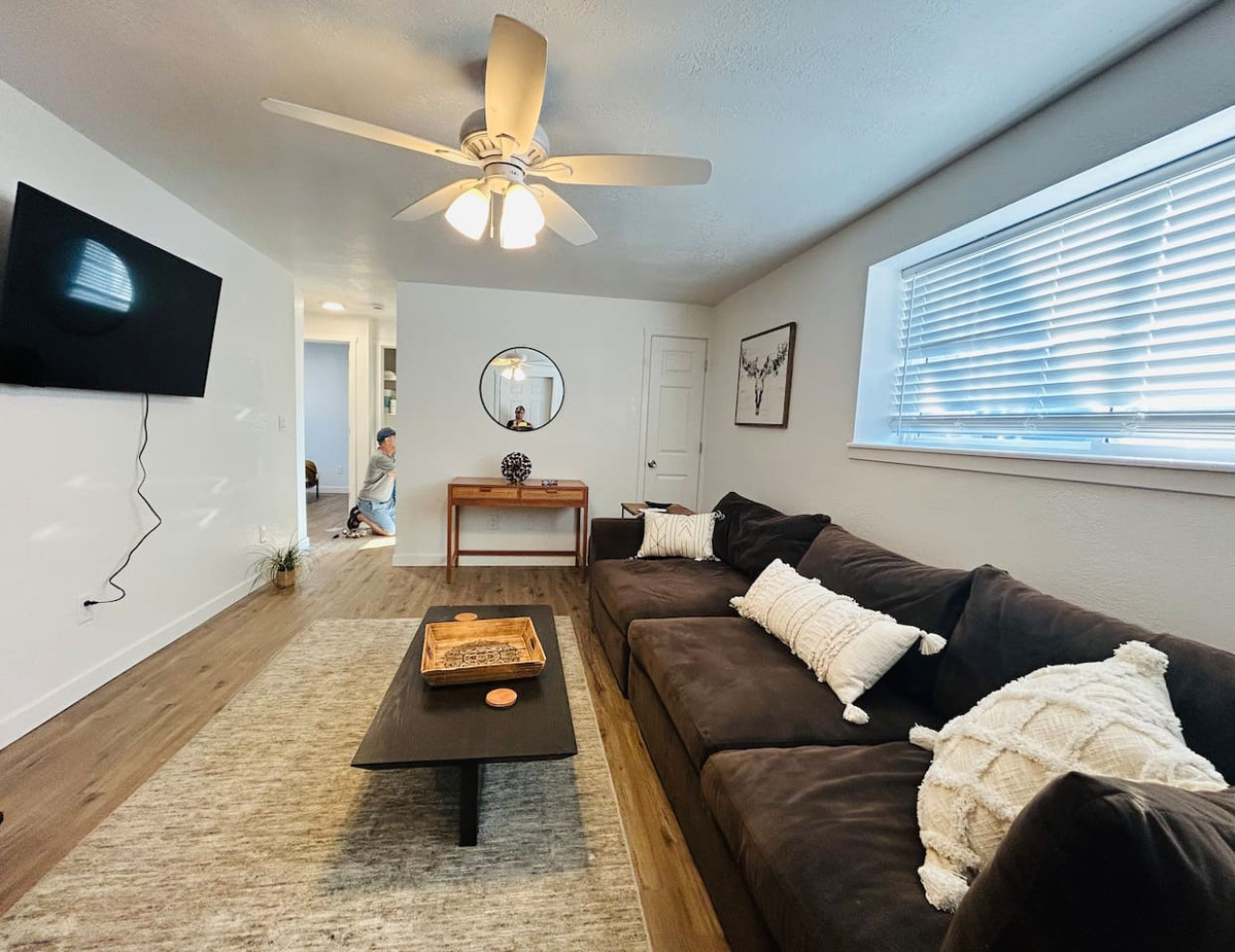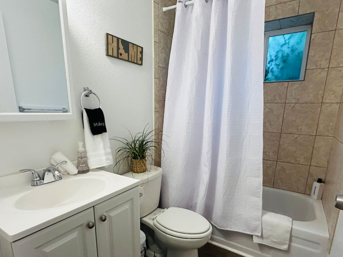 Step inside and saddle up for a cozy stay! Both bedrooms feature plush queen-size beds, spacious closets, and tasteful Western decor that gives each room its own unique character. Enjoy the open-concept living area, perfect for unwinding after a day exploring Idaho’s countryside or local attractions.
